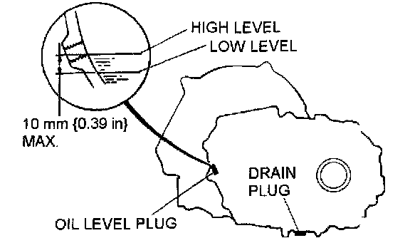 4. Remove the oil level plug with washer and add the specified amount and type of oil through the oil level plug hole until the level reaches the bottom of the oil level plug hole.