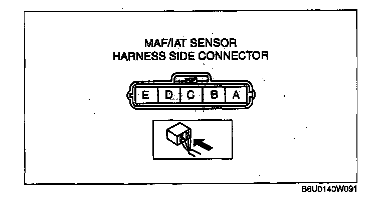 - MAF sensor terminal A (harness-side) and main relay terminal C (harness-side)