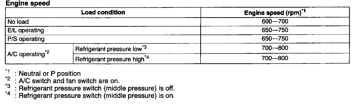 NOTE: Excludes temporary idle speed drop just after the loads are turned on.