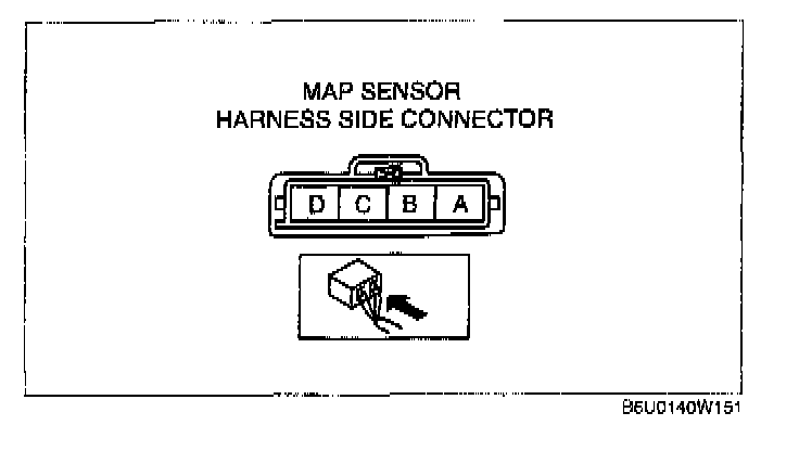 - MAP sensor terminal D (harness-side) and power supply.