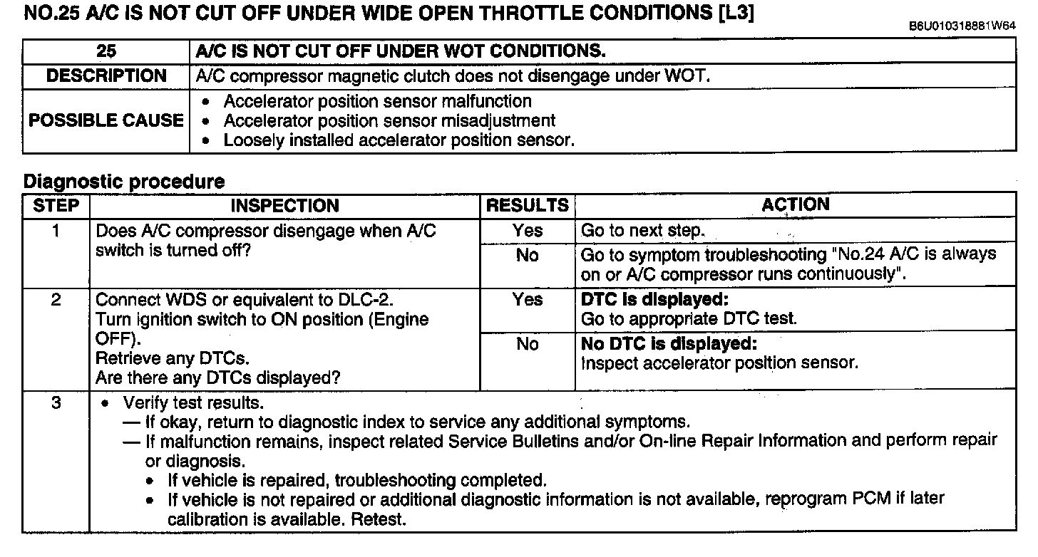 No.25 A/C Does Not Cut Off Under Wide Open Throttle Conditions