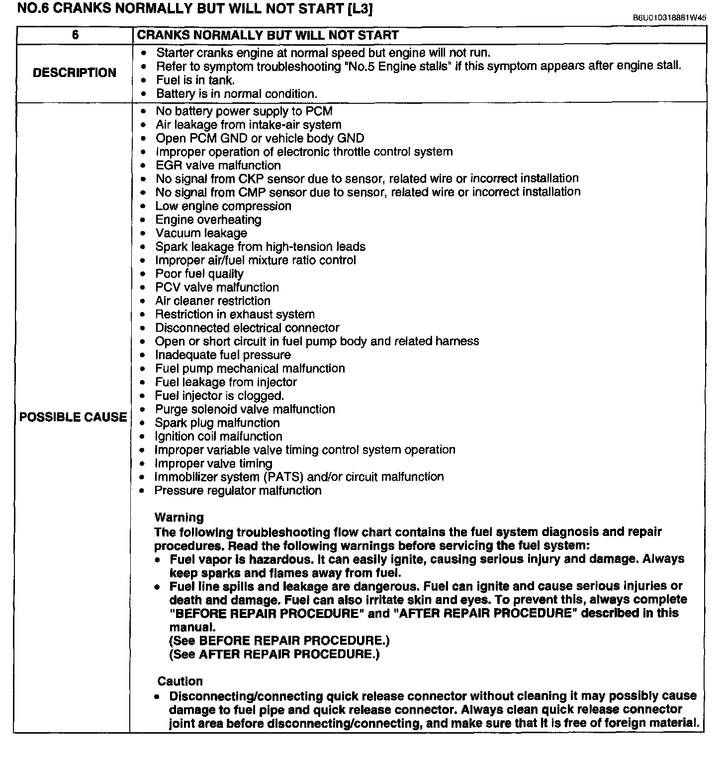No.6 Cranks Normally But Will Not Start
