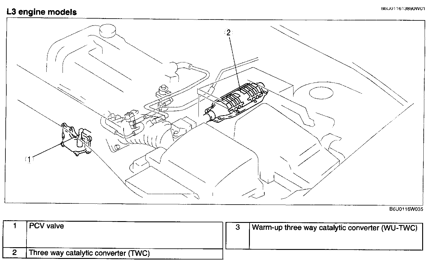 Positive Crankcase Ventilation (PCV) System And Catalytic Converter System Location Index: