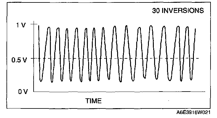 8. Count the number of times (inversions) that the upstream HO2S graph line actually crosses the 0.5 V line.