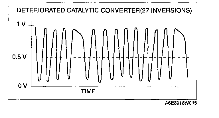 RATIO = 30 inversions (upstream HO2S inversions) + 27 inversions (downstream HO2S inversions) =1.1 (bad converter)