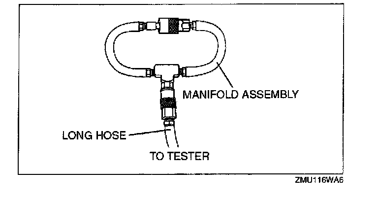 2. Connect the long hose (part of SST) to the tester.