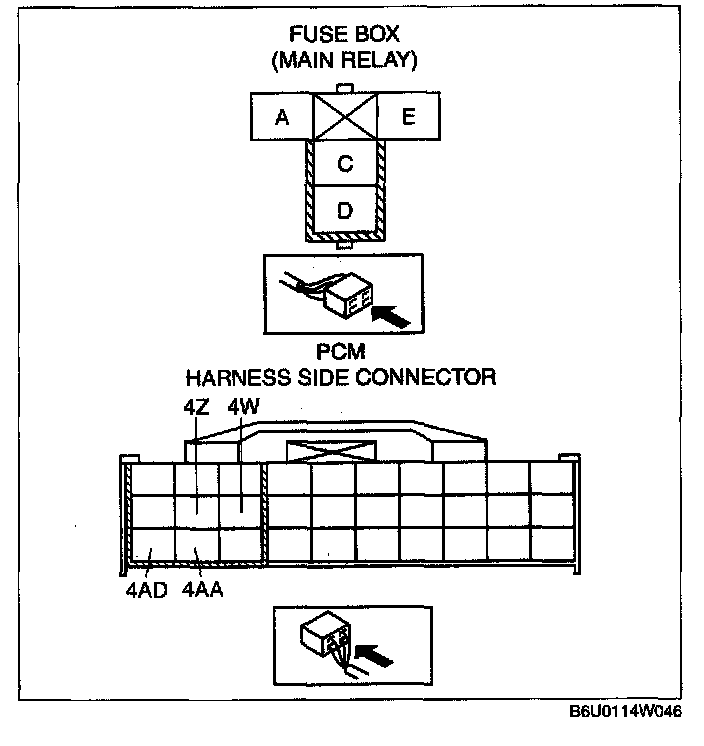 - No.4 cylinder fuel injector terminal B (harness-side) and PCM terminal 4AA.