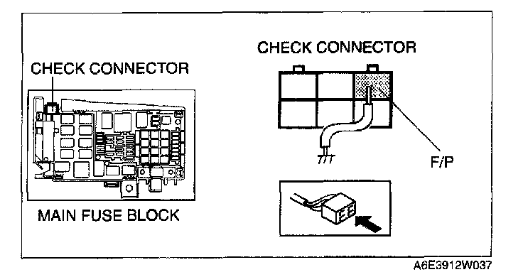 6. Short the check connector terminal F/P to body GND using a jumper wire.