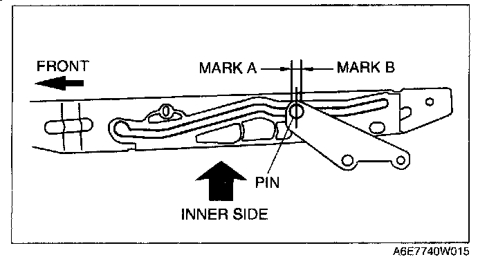 2. Move the guide by hand until the center of the pin comes between marks A and B.