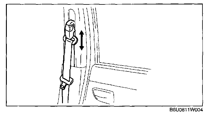 WARNING: When the load limiter operates, the belt and anchor rub against each other strongly leaving a trace of wear. If the seat belt is used in this state, the seat belt will not function to its designed effect and there is the possibility of serious injury to passengers. Be sure to replace the seat belt once the load limiter operates.