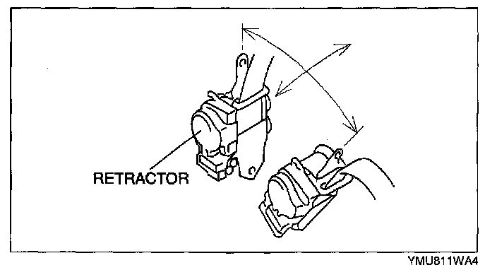 4. Make sure that the seat belt does not lock when the retractor is tilted slowly up to 15 ° from the mounted position and locks when the retractor is tilted 40 ° or more.