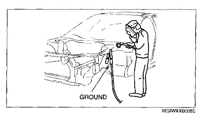 Precautions Before WeldingA vehicle has various electrical parts To protect the parts from excessive current generated when welding, be sure to perform the following procedure.