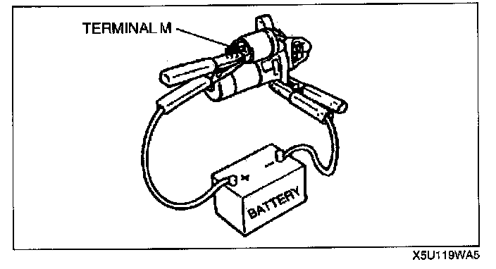 2. Connect battery positive voltage to terminal M and ground the starter body.