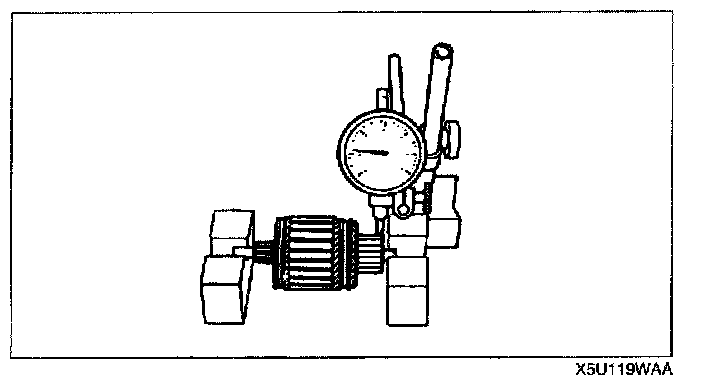 3. Place the armature on V-blocks, and measure the runout using a dial indicator.