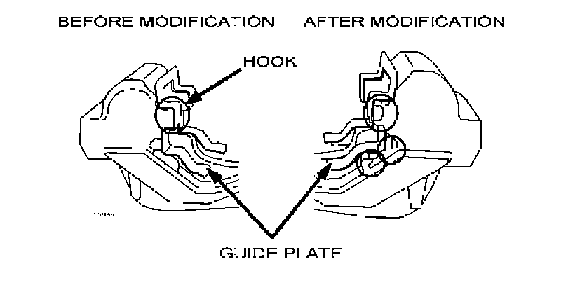 As service parts, the number of hooks on the guide plate has been increased to six (6) to prevent the guide plate from moving out of position.