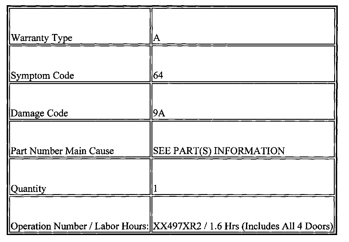 This warranty information applies only to verified customer complaints on vehicles eligible for warranty repair. Refer to the SRT microfiche for warranty term information.