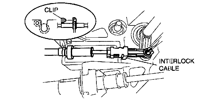 4. Verify that the interlock cable moves freely with the brake pedal depressed.