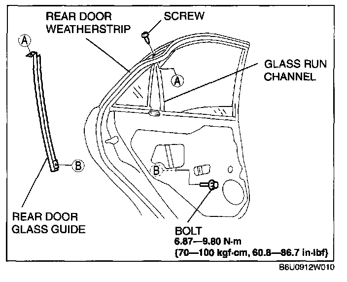 REAR DOOR GLASS REMOVAL/INSTALLATION1. Fully roll down the rear door glass.