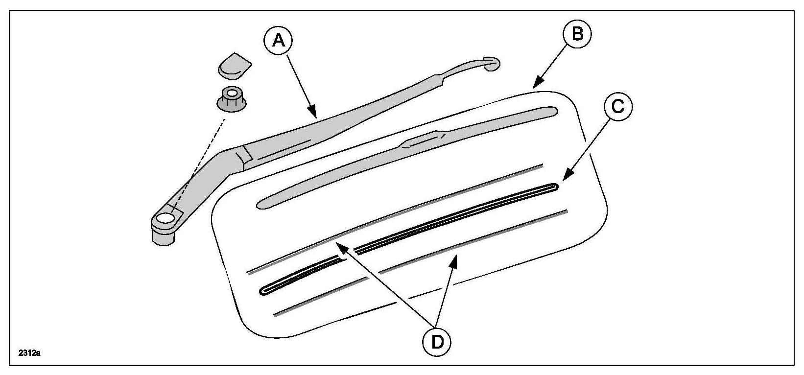 Poor window wiping issues (streaky surface, buzzing noise, etc.) usually occur due to contamination, damage or wear of the wiper rubber (C) and condition of glass surface coating. In these cases there is normally no problem with the wiper blades (B), wiper arms (A) or backing rubber (D).