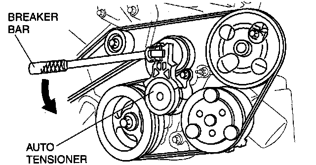 2. Set a breaker bar on the center of the tensioner pulley as shown.