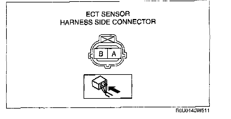 - ECT sensor terminal B (harness-side) and power supply
