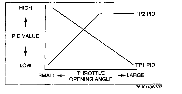 5. Verify that the TP1 or TP2 PID (percentage) changes smoothly while throttle valve is gradually opened.