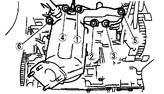Tighten the cylinder head bolts in the order shown using the following 6 steps.