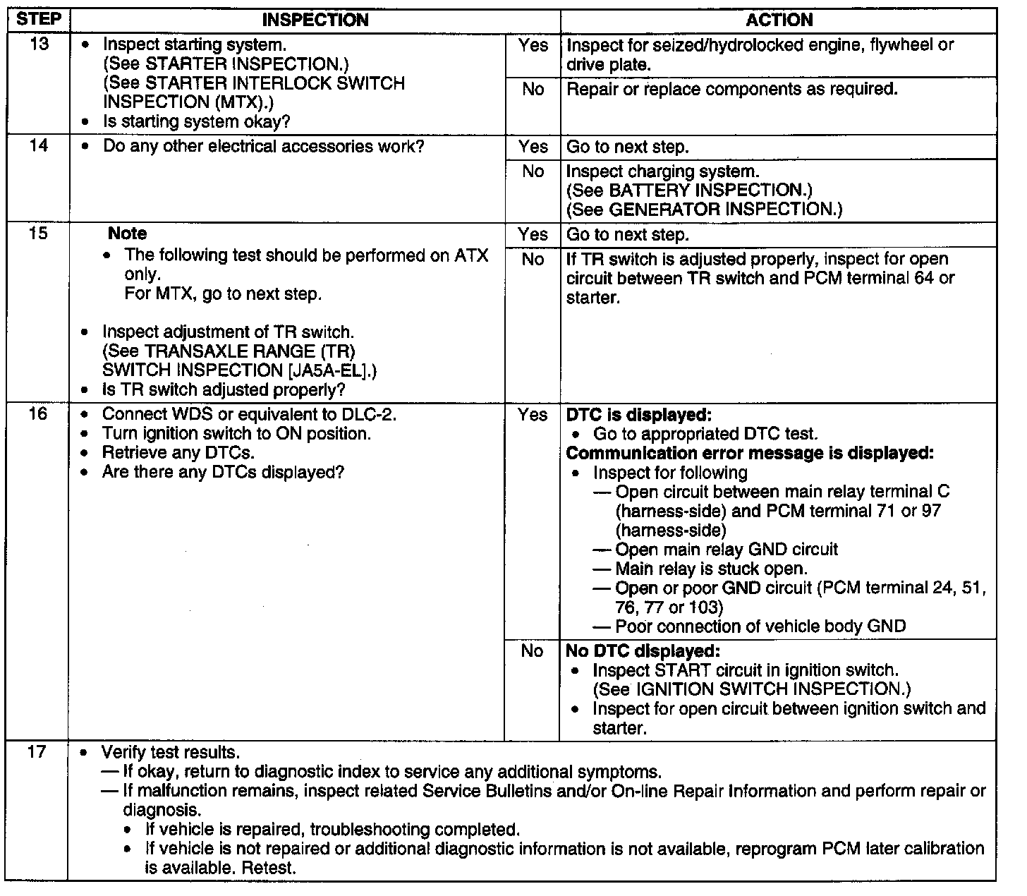 Starting System: Testing and Inspection