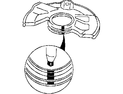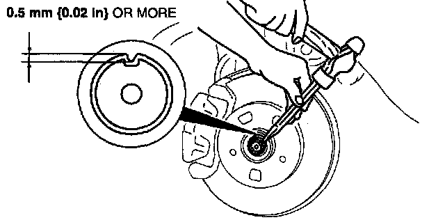 2. If the bearing inner race remains on the front wheel hub component, grind a section of the bearing inner race until approximately 0.5 mm (0.02 inch) remains. Then remove it using a chisel.