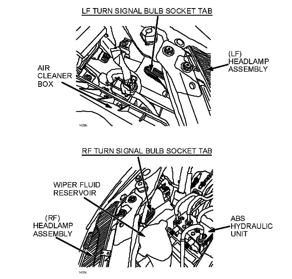 2. Locate large plastic tab on turn signal bulb socket.