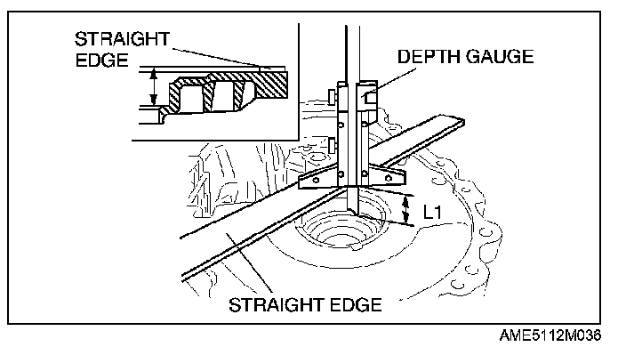 1. Measure dimension L1 between the clutch housing installation surface of the transaxle case and the adjustment shim installation surface using a depth gauge and straight edge.