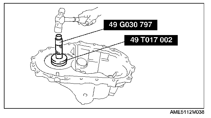 2. Install the outer race to the ring gear side of the differential side bearing and, keeping the outer race level, lightly push it in and rotate the final gear 5 times or more.