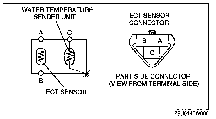 ENGINE COOLANT TEMPERATURE (ECT) SENSOR INSPECTIONInspection of Resistance