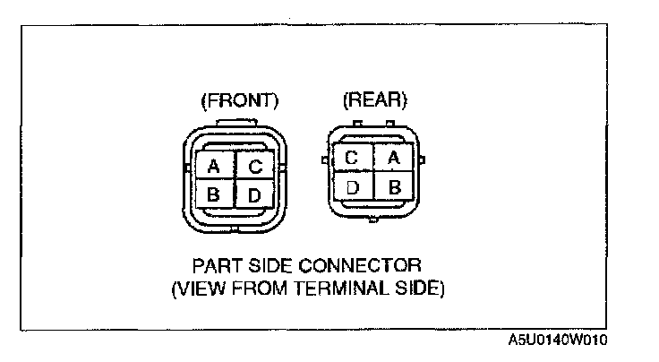 - Heated oxygen circuit (HO2S connector terminal A and PCM connector terminal 4W (Front).)