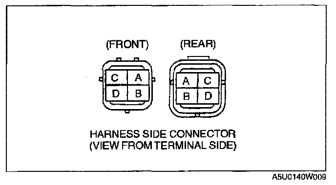 - HO2S connector terminal A and PCM connector terminal 4W to GND (Front).