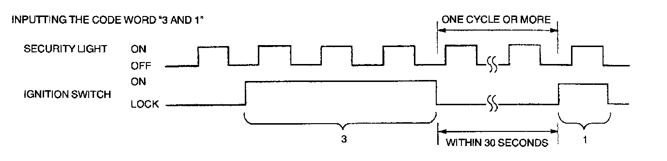 c. Turn ignition switch to ON position while security light is off and count three illumination cycles. As the light goes out after the third illumination, turn key to LOCK position.