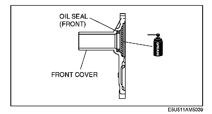 Install the oil seal (front) onto the front cover.