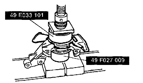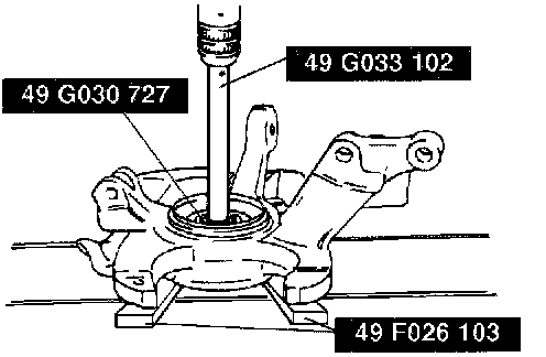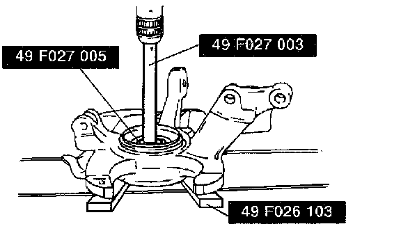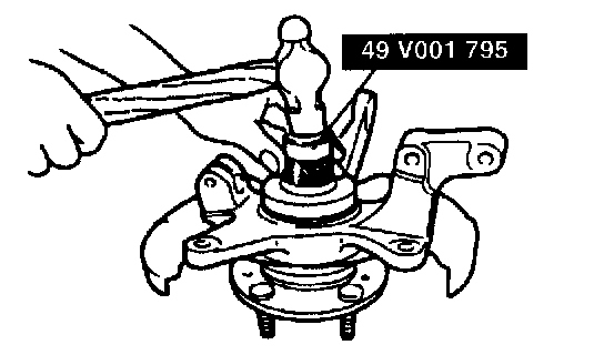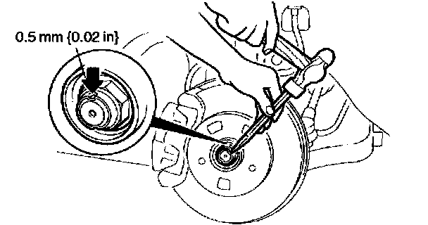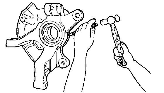2. If the bearing inner race remains on the front wheel hub component, grind a section of the bearing inner race until approximately 0.5 mm (0.020 inch) remains. Then remove it using a chisel.