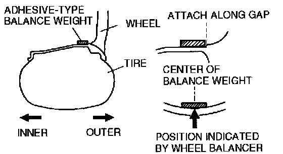 5. Select a balance weight closest to the weight value and attach the balance weight on the position (outer) indicated by the wheel balancer.