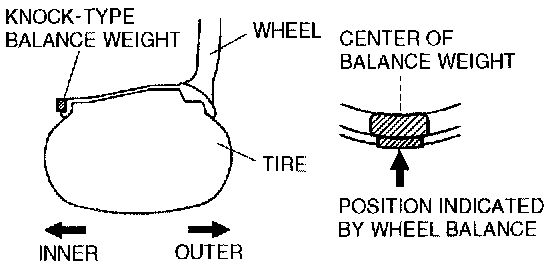 6. If attaching 2 balance weights, position them so that each is on either side of the position indicated by the wheel balancer.