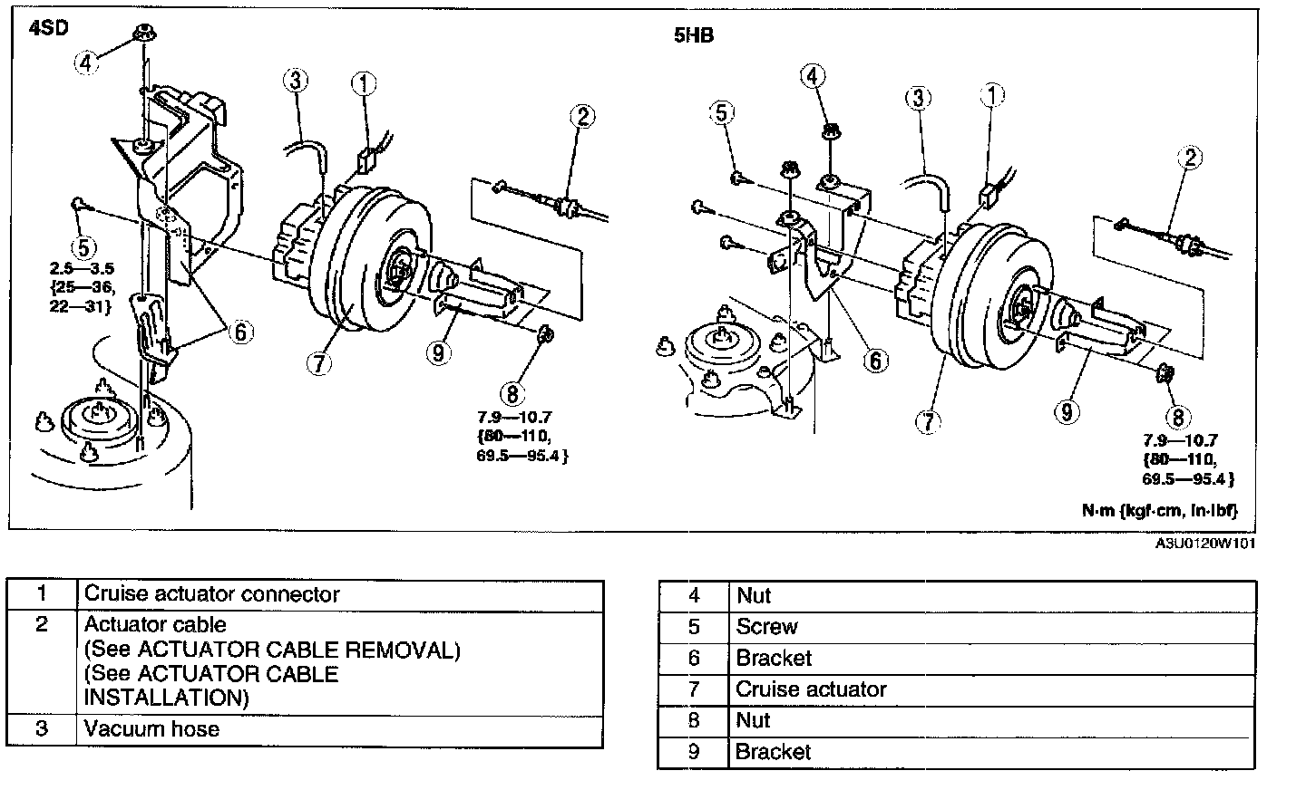 CRUISE ACTUATOR REMOVAL/INSTALLATION