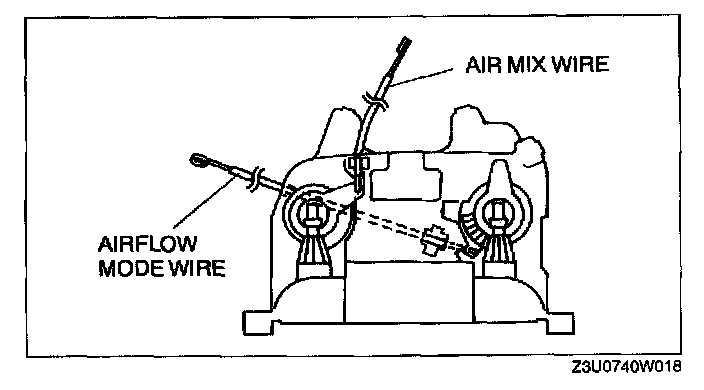 2. Disconnect the air mix and airflow mode wires from each wire clamp and link.