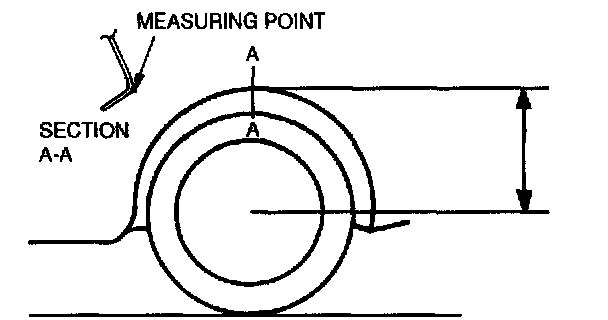 6. Measure the height from the center of the wheel to the fender brim. The difference between the left and right measurement must not exceed 10 mm (0.39 inch).