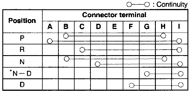 Inspection of Operation1. Verify that the starter operates only with the IG SW at the START position and the selector lever in P and N positions.