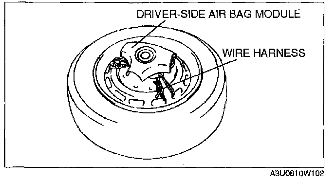 - To secure the air bag module to the wheel, wrap the wire harness through the wheel and the bolt installation hole at least 4 times.