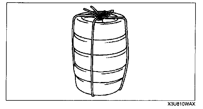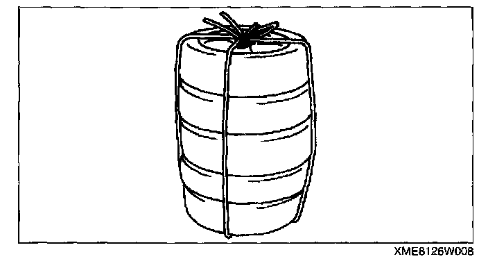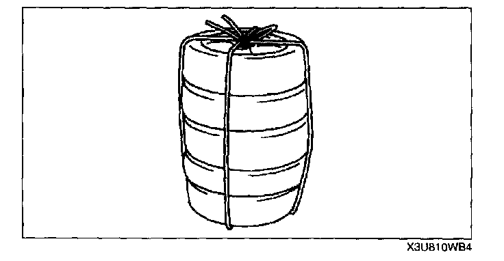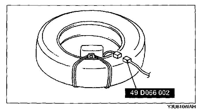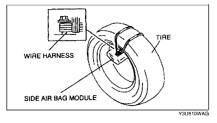 3. Tie the side air bag module to the tire with the module facing the center of the tire. Wrap the wire harness through the tire and around the nuts at least 4 times.