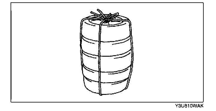 3. Tie the passenger-side air bag module to a tire with the module facing the center of the tire. Wrap the wire harness through the tire and around the bolts at least four times.
