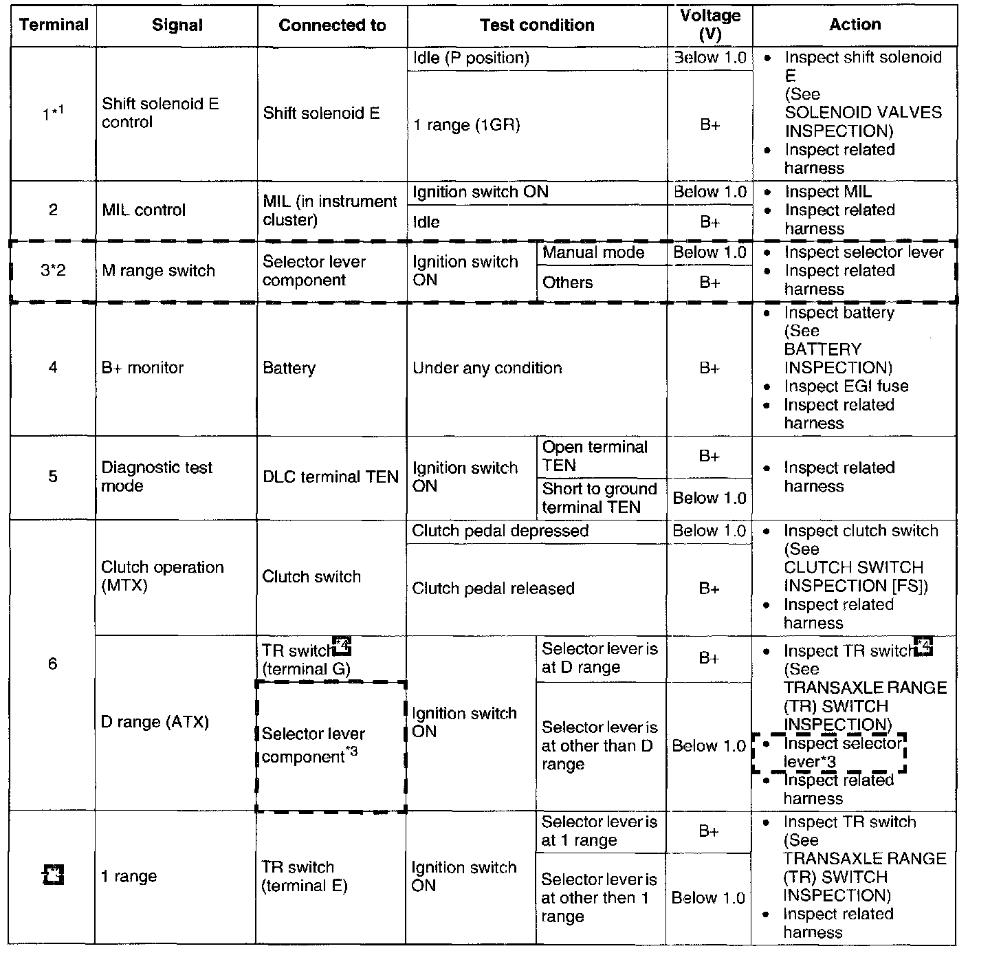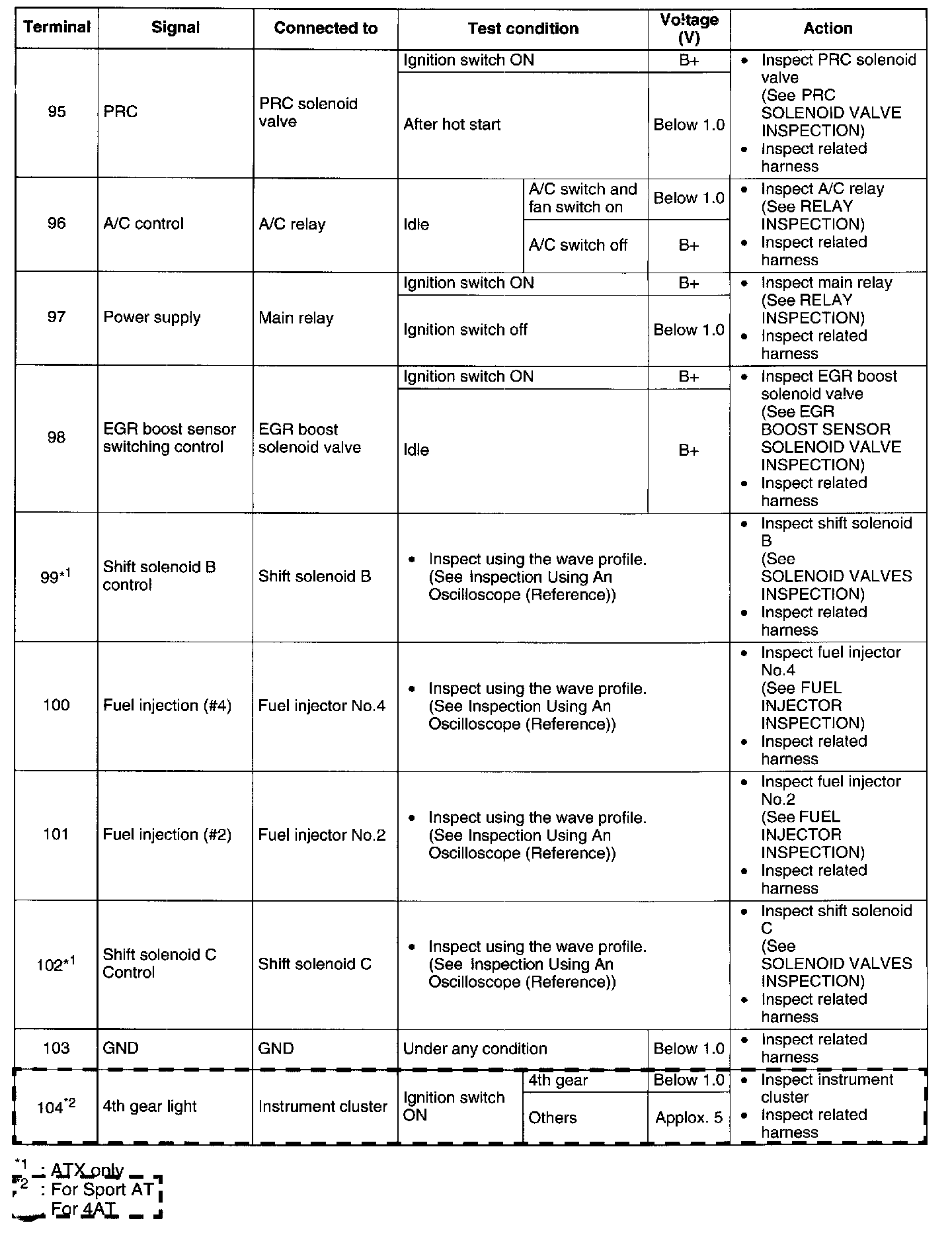 - If any incorrect voltage is detected, inspect the related system(s), wiring harnesses and connector(s) referring to the Action column in the terminal voltage table.