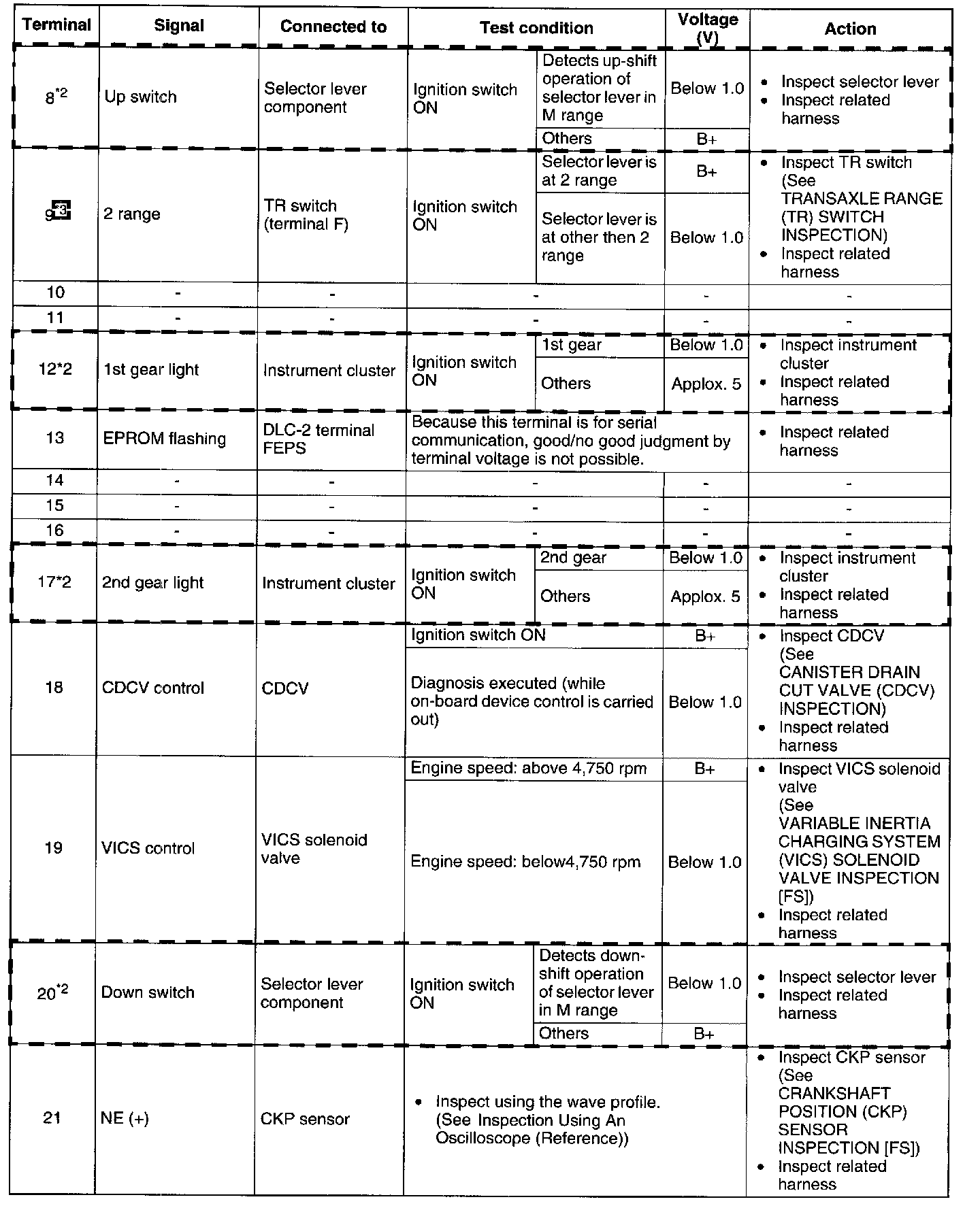 Terminal Voltage Table (Reference) - Terminals (8 - 21):
