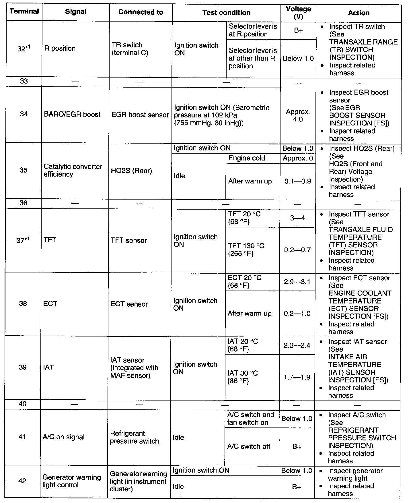 Terminal Voltage Table (Reference) - Terminals (32 - 42):